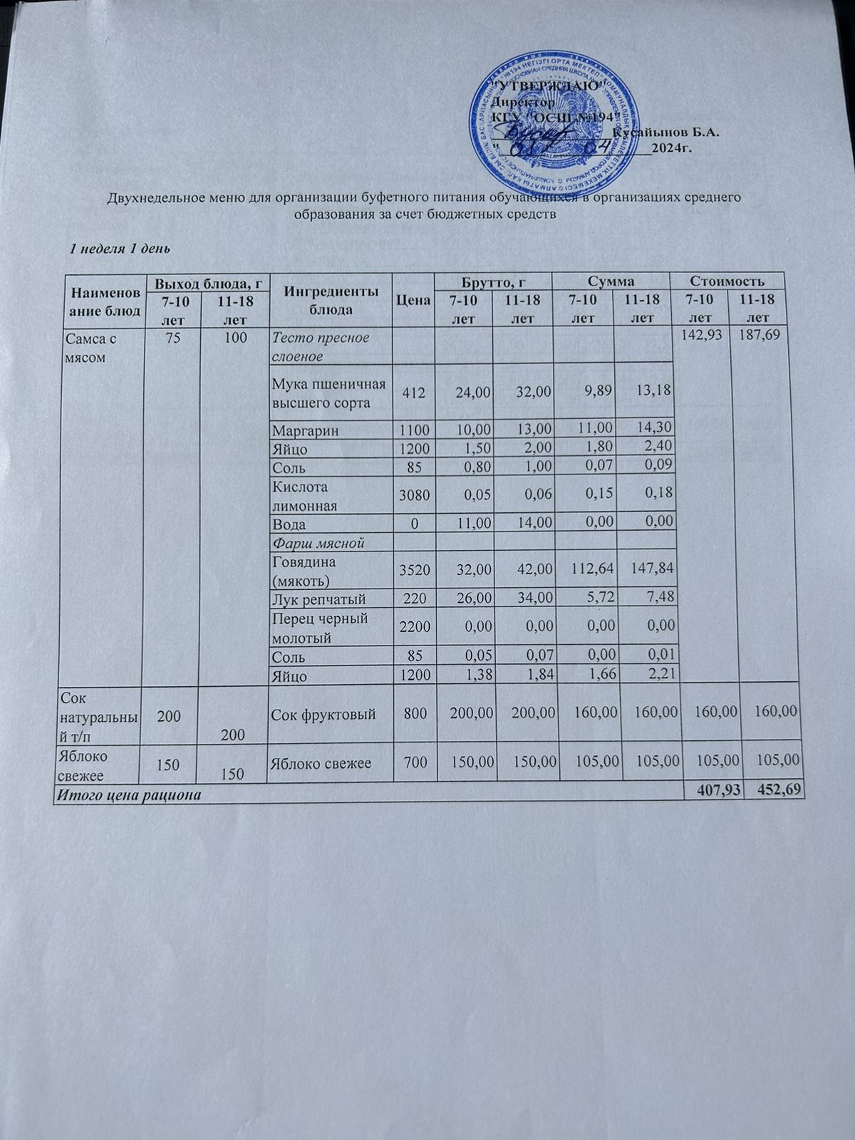 01 апрель 2024 0 1 2 3 4 5 Бастауыш сынып оқушыларына және аз қамтылған отбасылардын шыққан оқушыларға арналған буфеттік меню 01.04.2024