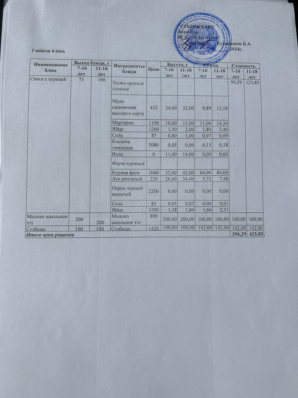 18 апрель 2024 0 1 2 3 4 5 Бастауыш сынып оқушыларына және аз қамтылған отбасылардын шыққан оқушыларға арналған буфеттік меню 18.04.2024