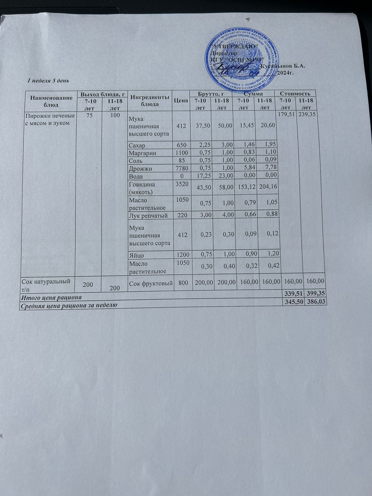 19 апрель 2024 0 1 2 3 4 5 Бастауыш сынып оқушыларына және аз қамтылған отбасылардын шыққан оқушыларға арналған буфеттік меню 19.04.2024