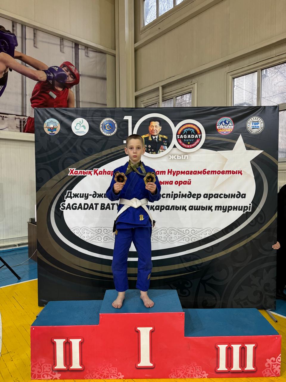 Мектебіміздің 5-сынып білім алушысы Маулетканов Аян Қазақстан Республикасының Қорғаныс министрі, Армия Генералы, Кеңес Одағының Батыры, Халық Қаһарманы Сағадат Нұрмағамбетовтың 100 жылдығына орай джиу-джитсудан өткен халықаралық ашық турнирде 10-11 жас аралығында 35 кг салмақ дәрежесінде І орын, 11-12 жас аралығында 35 кг салмақ дәрежесінде ІІ орын иеленді. Құттықтаймыз! 🎉