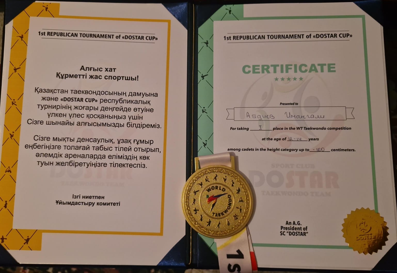 Мектебіміздің 9-сынып білім алушысы Абдиев Иманғали таеквондодан DOSTAR CUP республикалық турнирге қатысып жүлделі І орынды иеленді. Құттықтаймыз🎉 Әрқашан да биіктен көріне бер🎉