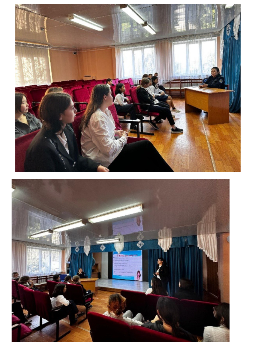 Аталған іс-шара мектептің 5-9 сынып білім алушыларын ұл жән қыздарды бөлек жинап өткізілді. Иректордың тәрбие ісі жөніндегі орынбасары, мектеп психологі және мектеп инспекторы білім алушыларға көптеген ақпарат бере білді.