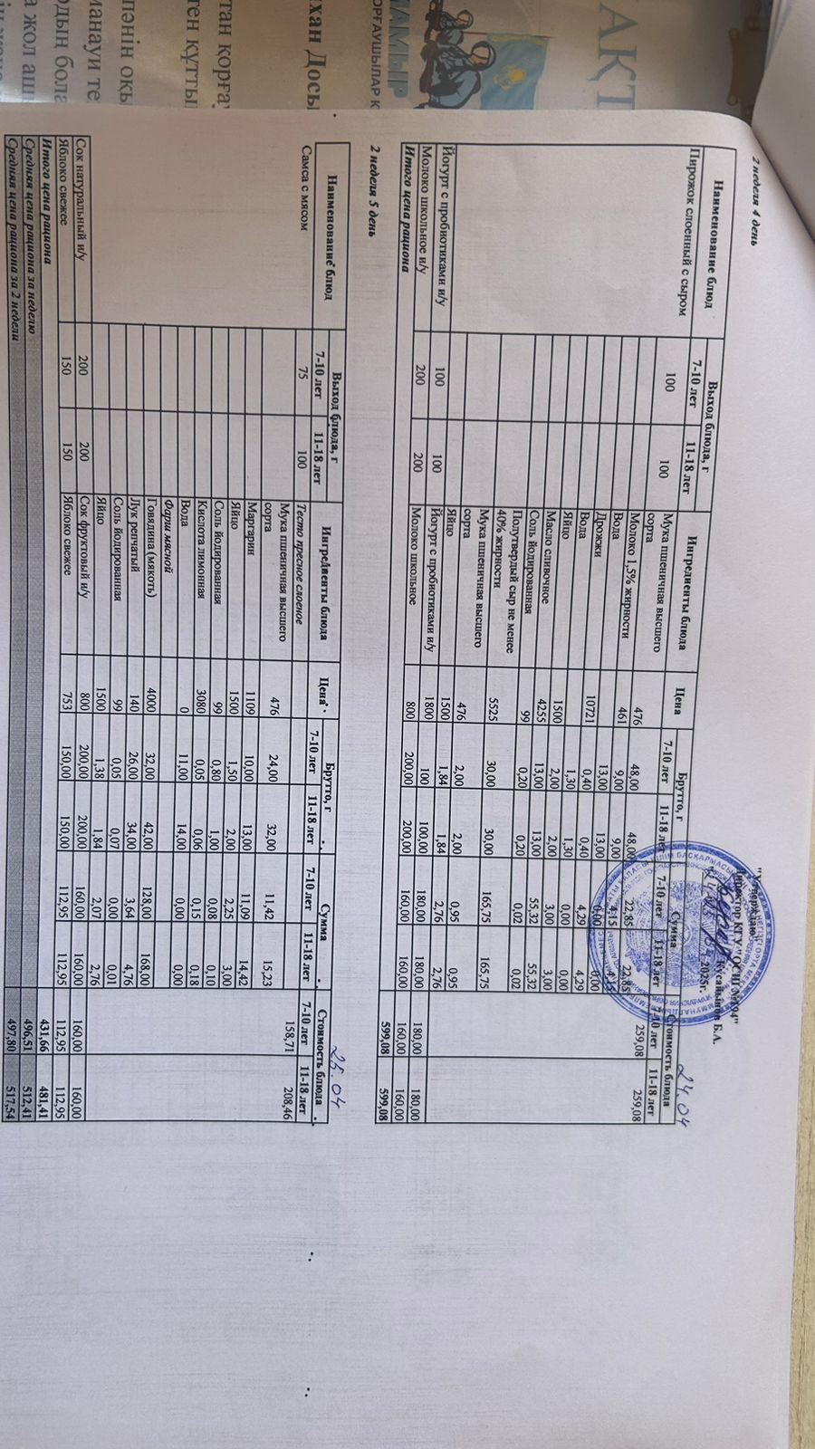 24 апрель 2025 0 1 2 3 4 5 Бастауыш сынып оқушыларына және аз қамтылған отбасылардын шыққан оқушыларға арналған буфеттік меню 24-25.04.2025