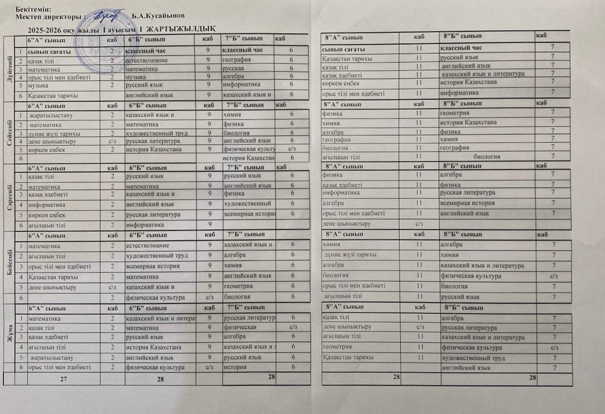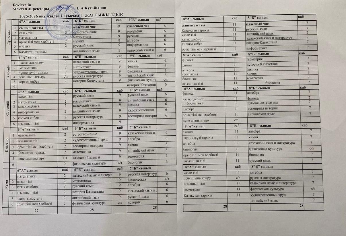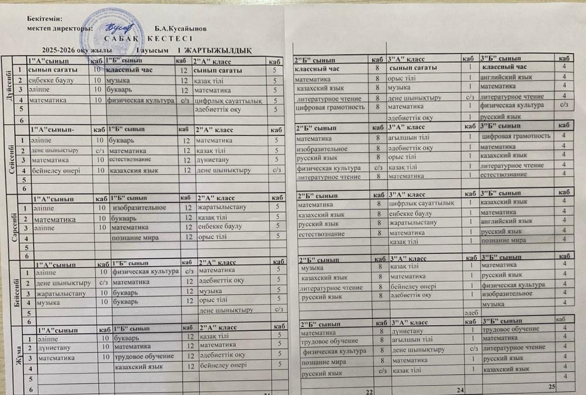 Сабақ кестесі 2025-2026 оқу жылы » КГУ «Общеобразовательная школа №194 » Управления образования г.Алматы