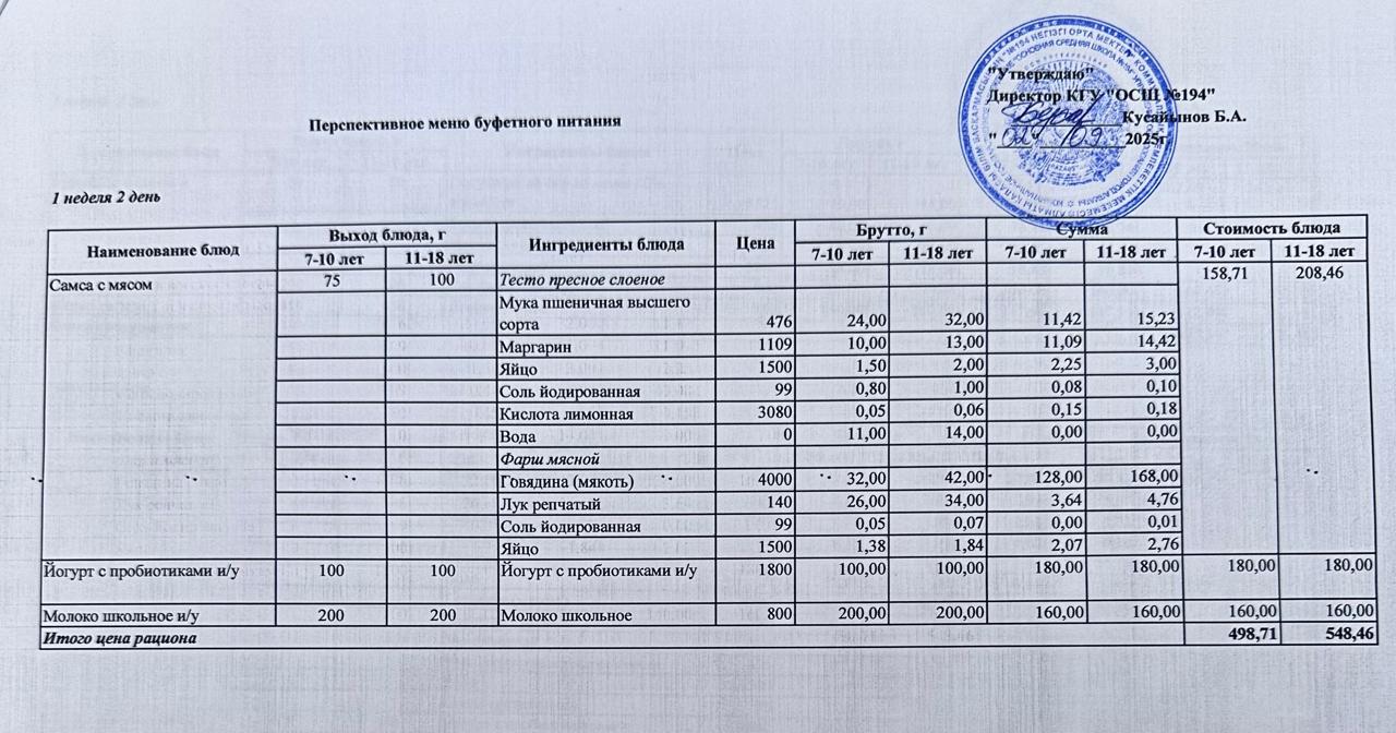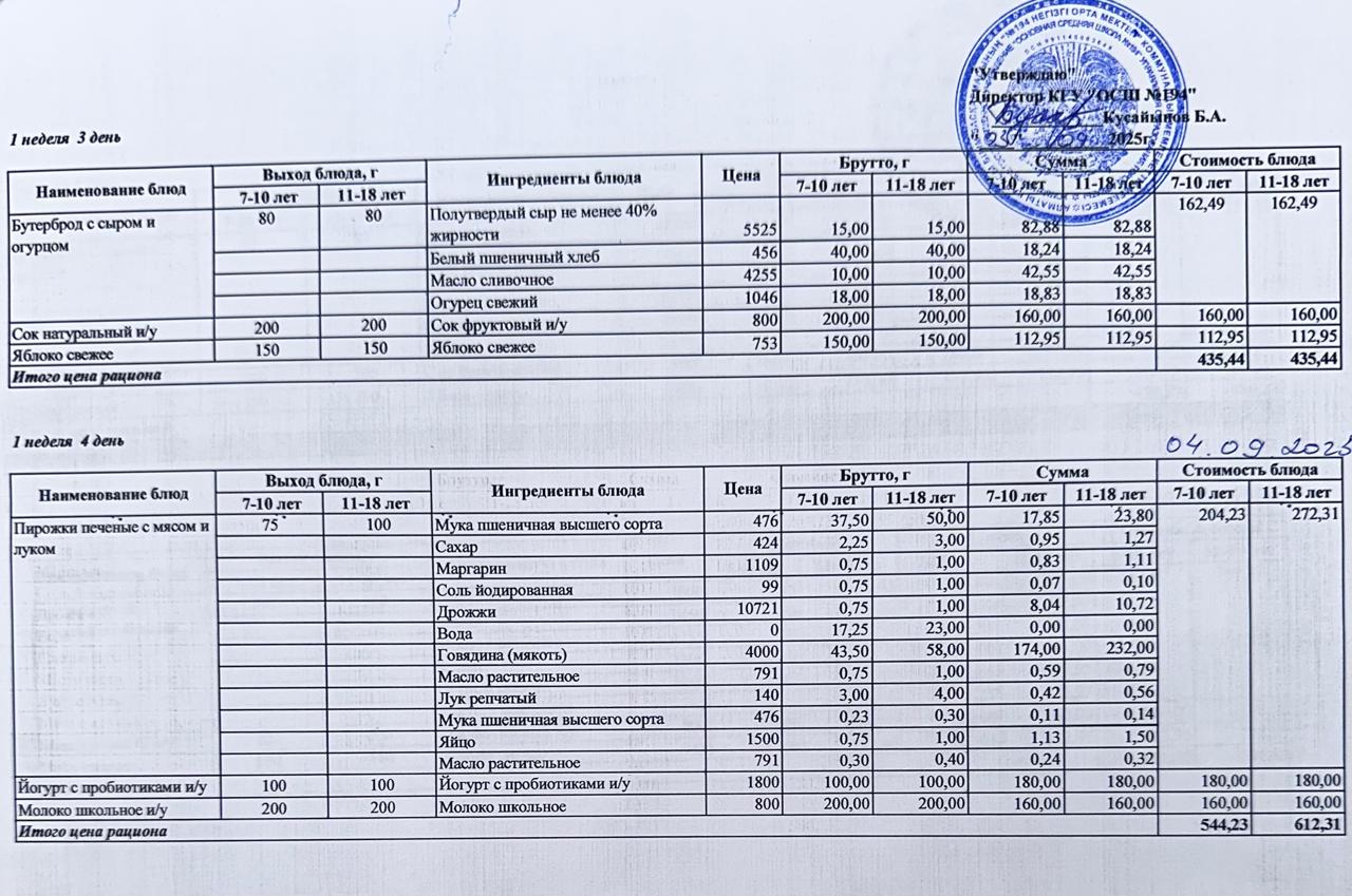 02 сентябрь 2025 0 1 2 3 4 5 Бастауыш сынып оқушыларына және аз қамтылған отбасылардын шыққан оқушыларға арналған буфеттік меню 02-05.09.2025 Бастауыш сынып оқушыларына және аз қамтылған отбасылардын шыққан оқушыларға арналған буфеттік меню 02-05.09.2025