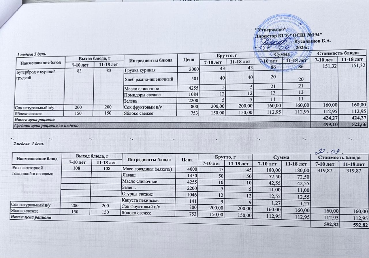 22 сентябрь 2025 0 1 2 3 4 5 Бастауыш сынып оқушыларына және аз қамтылған отбасылардын шыққан оқушыларға арналған буфеттік меню 22-26.09.2025 Бастауыш сынып оқушыларына және аз қамтылған отбасылардын шыққан оқушыларға арналған буфеттік меню 22-26.09.2025