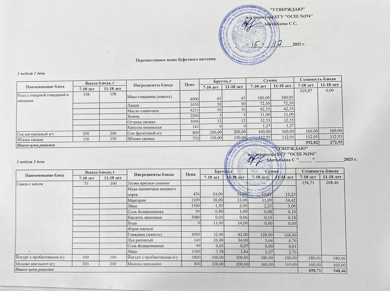 15 декабрь 2025 0 1 2 3 4 5 Бастауыш сынып оқушыларына және аз қамтылған отбасылардын шыққан оқушыларға арналған буфеттік меню 15-19.12.2025