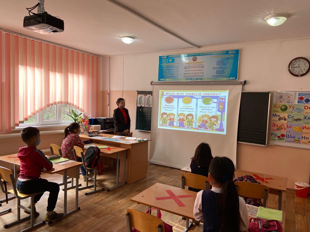 Мектеп оқушыларына жолда жүру ережесін үйрету мақсатында “ Жола ереже сақтайық!” тақырыбында сынып сағаттары өткізілді.