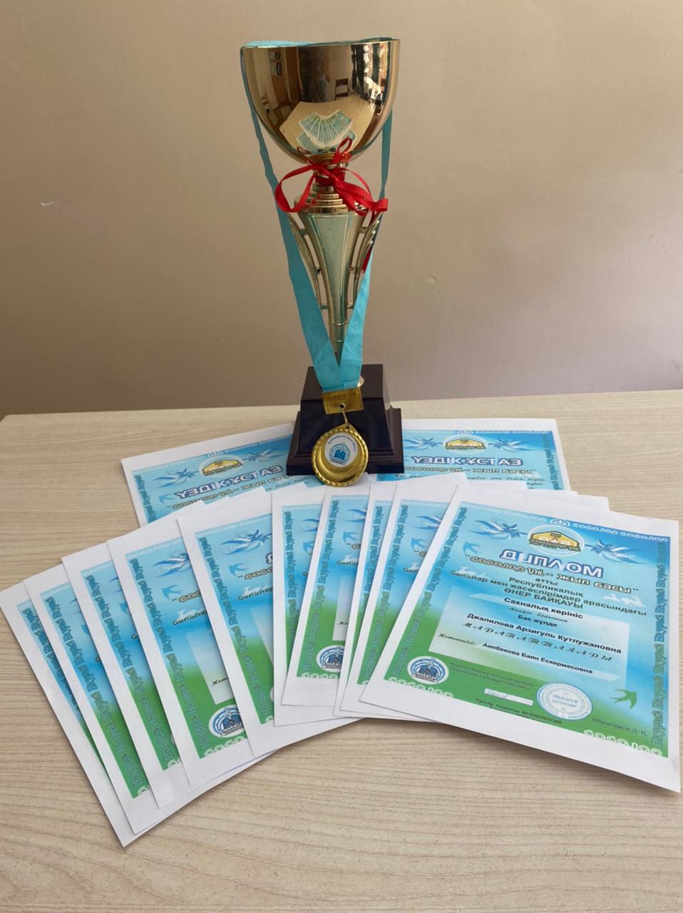 27 май 2021 0 1 2 3 4 5 "Бабалар үні - жыл басы" өнер байқауы "Бабалар үні - жыл басы" атты республикалық балалар мен жасөспірімдер арасындағы өнер байқауында мектеп оқушылары бас жүлдені иемденді.