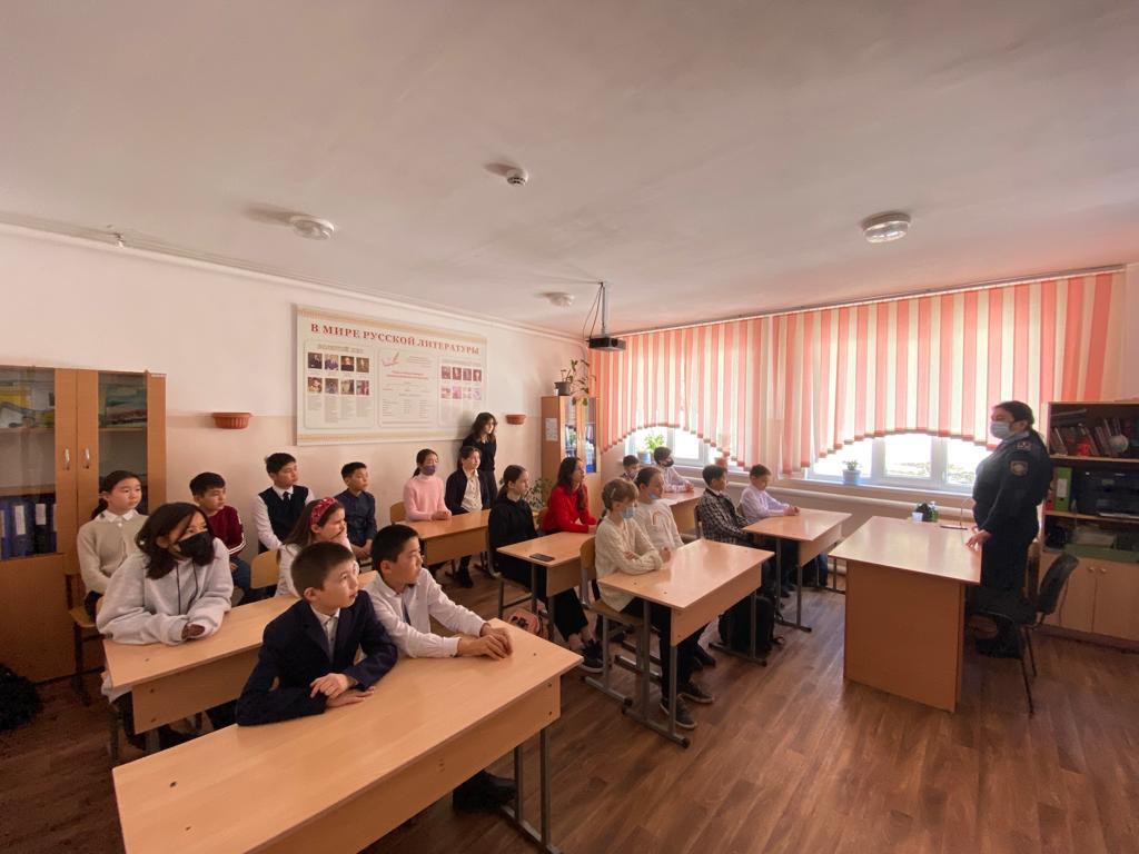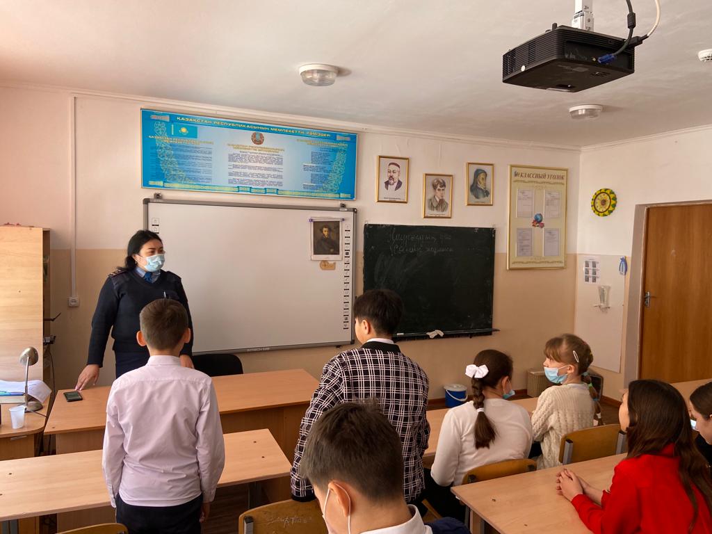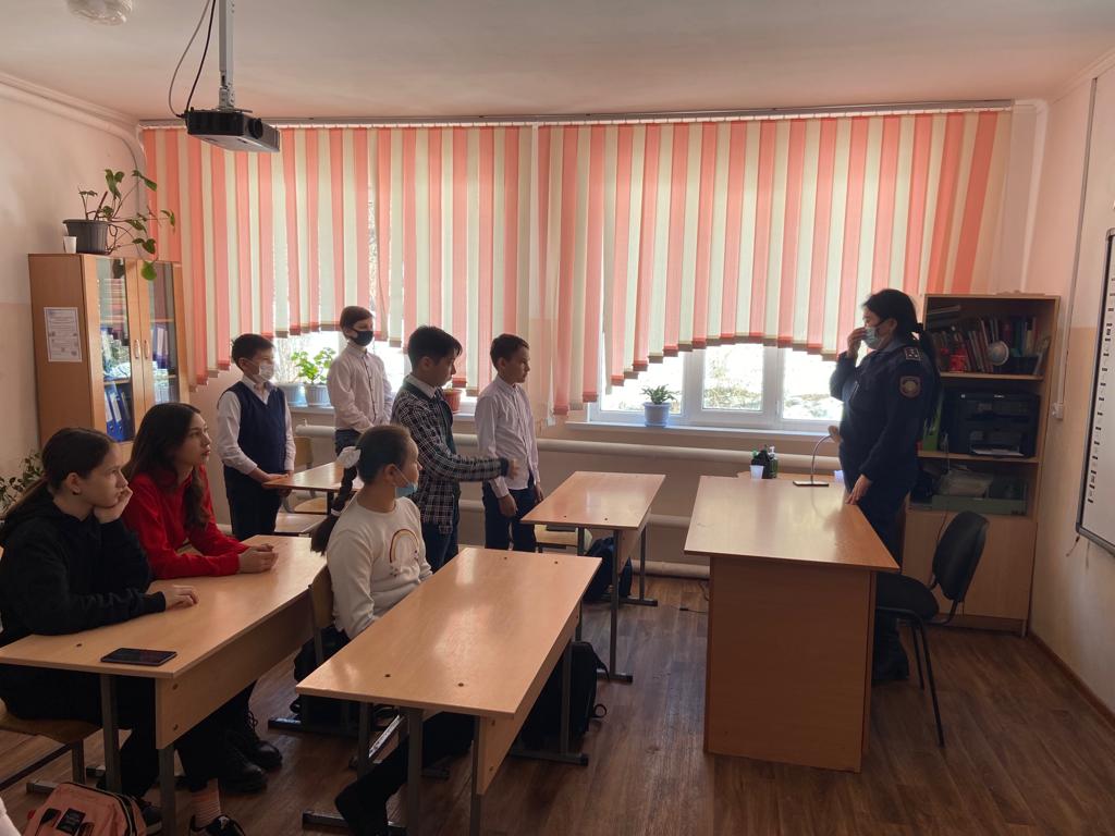 Құқық бұзушылықтың алдын алу мақсатында мектебімізде учаскелік инспекторы Тулепова Жанна Жанайдаровна білім алушылармен кездесті