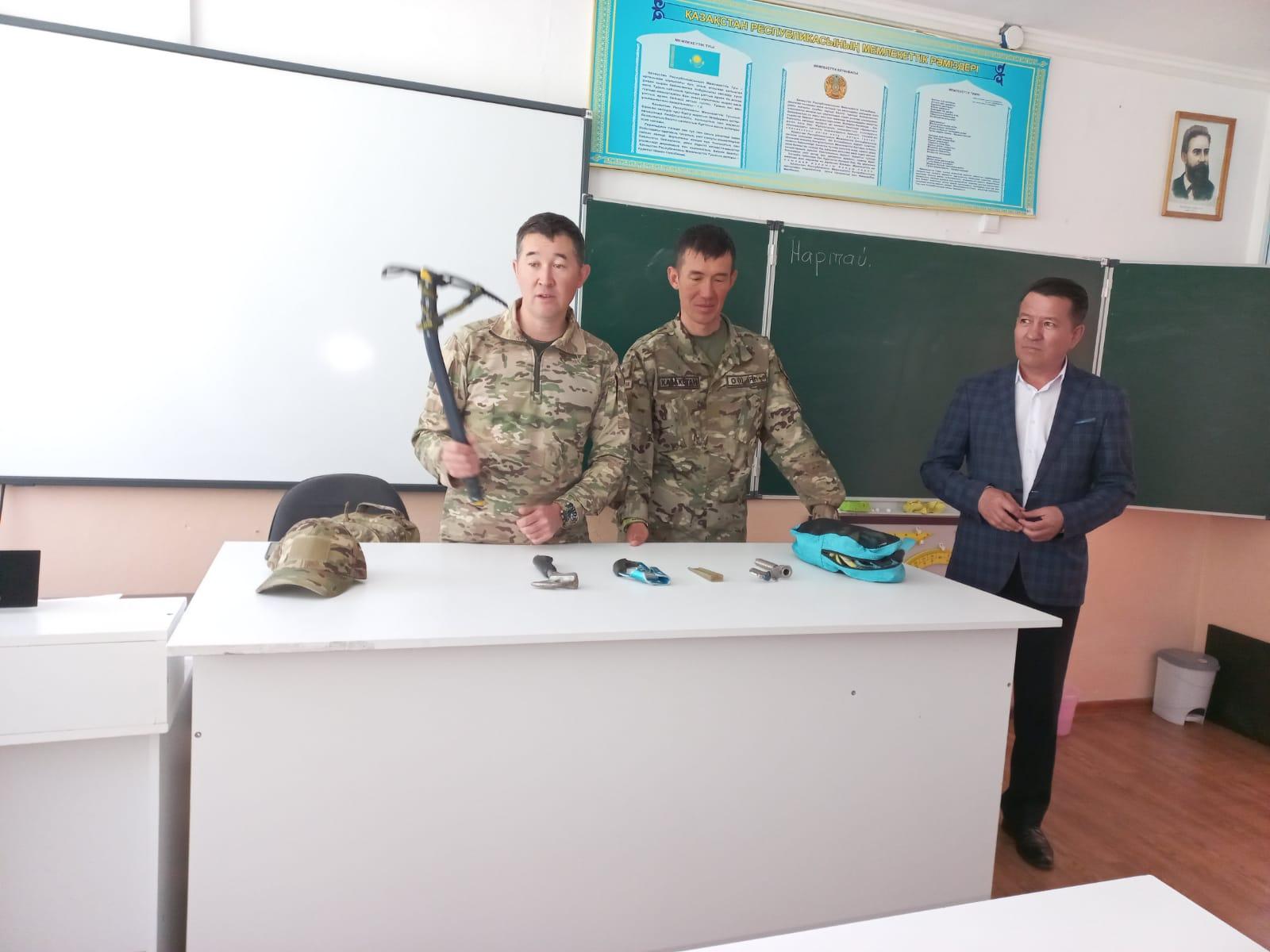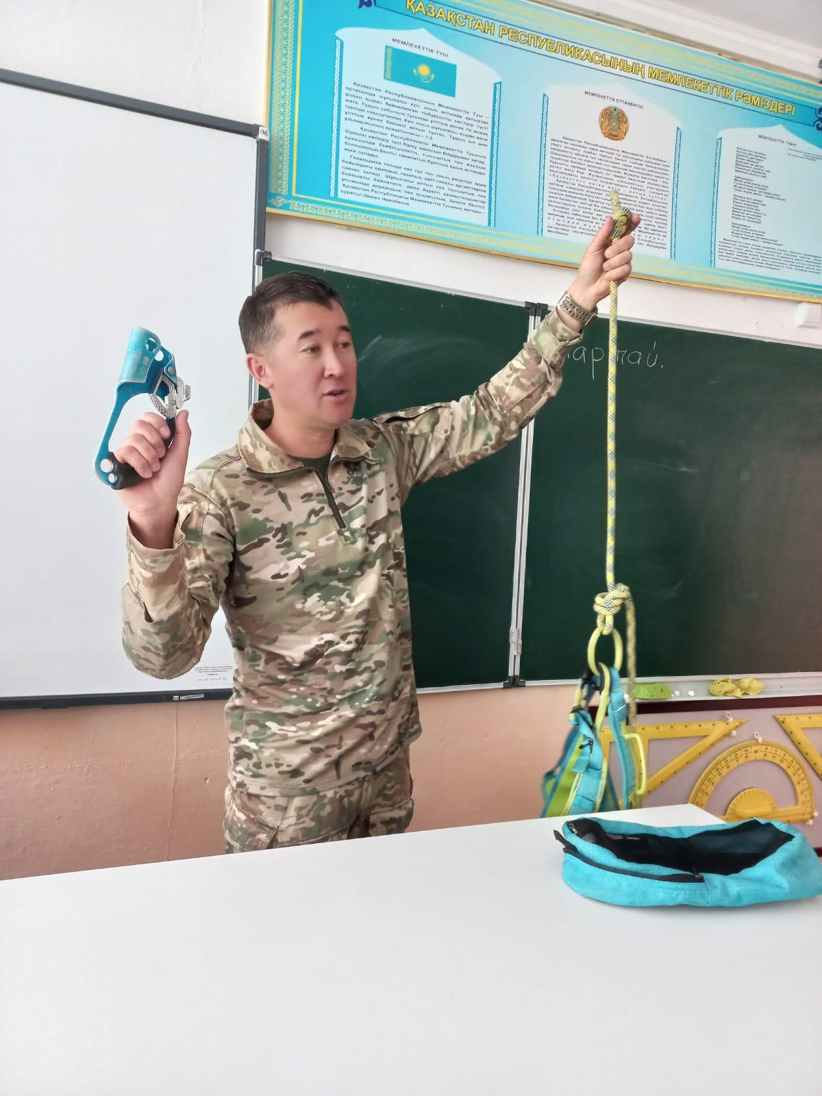 06 май 2022 0 1 2 3 4 5 Спорт шеберінен танымдық сабақ Мектебімізге 18272 Әскери бөлімшесінен Халықаралық деңгейдегі спорт шебері, тау дайындығы бойынша жоғарғы санаттағы нұсқаушы Жумаев Максут Сагинтаевич келіп білім алушылармен танымдық кездесу өткізді