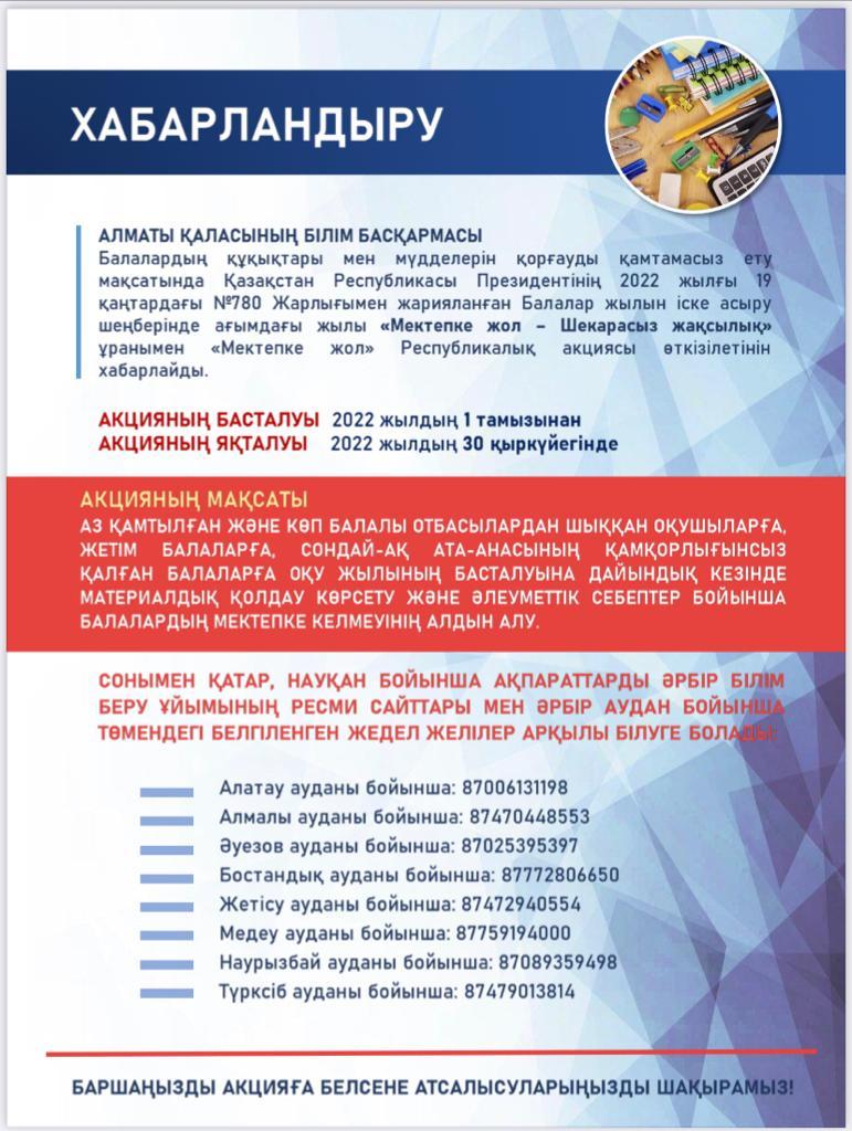 » » "МЕКТЕПКЕ ЖОЛ - ШЕКАРАСЫЗ ЖАҚСЫЛЫҚ" ХАБАРЛАНДЫРУ