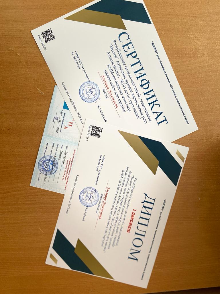 13 сентябрь 2022 0 1 2 3 4 5 Жетістіктеріміз Мектебіміздің көркем еңбек пәні мұғалімі Досекенова Эльмира Кадирбергеновна Республикалық ғылыми әдістемелік, педагогикалық "Мектеп" журналында жұмысы жарық көріп, тәжірибе бөліскені үшін дипломмен марапатталды.