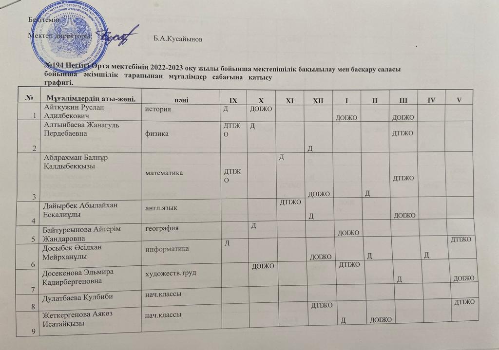 05 сентябрь 2022 0 1 2 3 4 5 2022-2023 оқу жылы бойынша мектепішілік бақылау мен басқару саласы бойынша әкімшілік тарапынан сабаққа қатысу жоспары