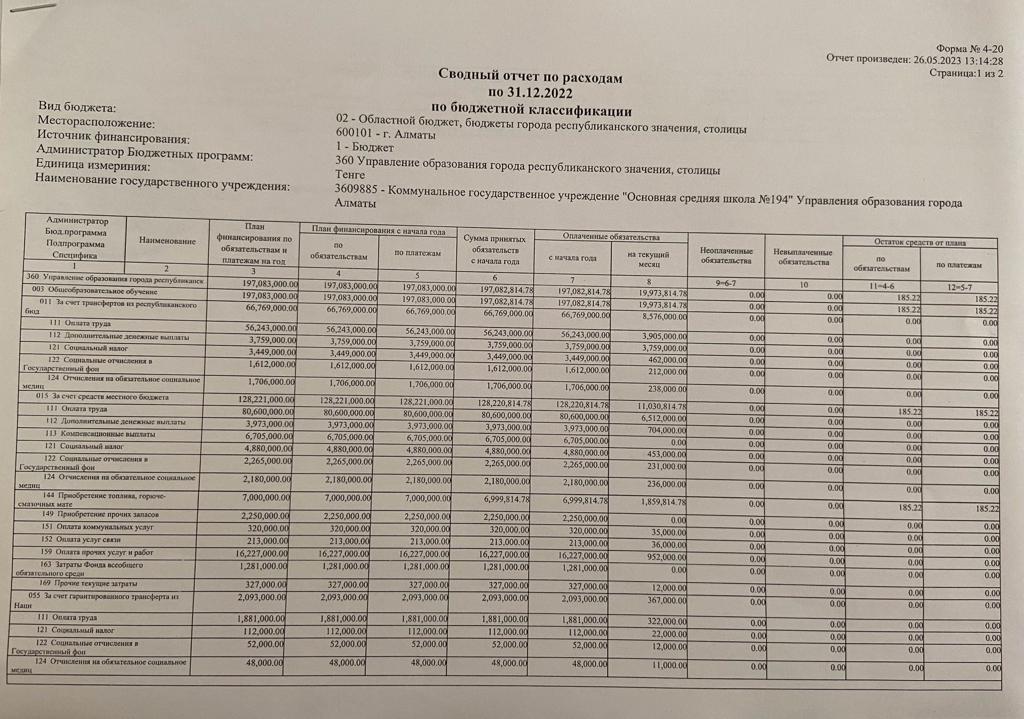 Шығыс бойынша есеп » КГУ «Общеобразовательная школа №194 » Управления образования г.Алматы
