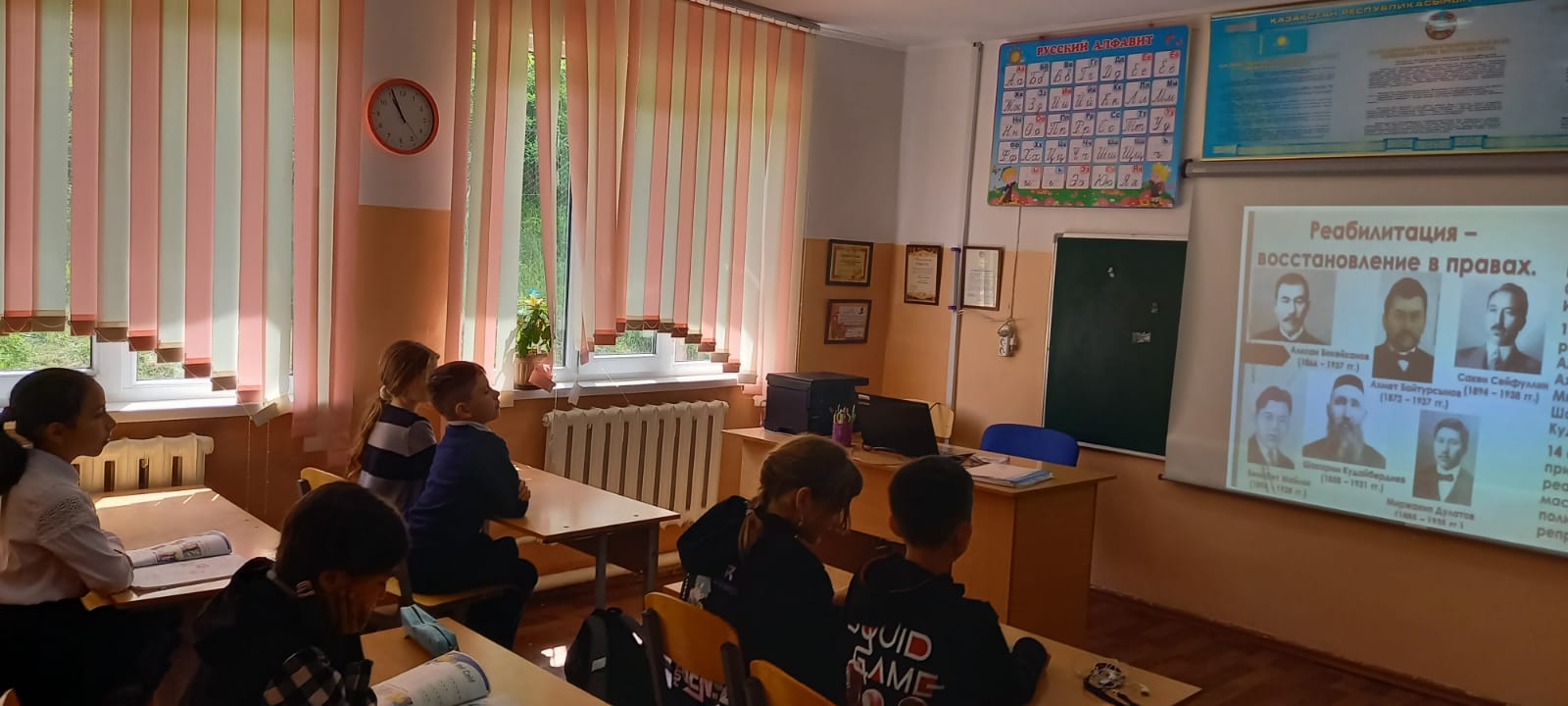 31-мамыр Саяси қуғын-сүргін құрбандарын еске алу күніне орай №194 негізгі орта мектебінде сынып сағаттары өткізілді.