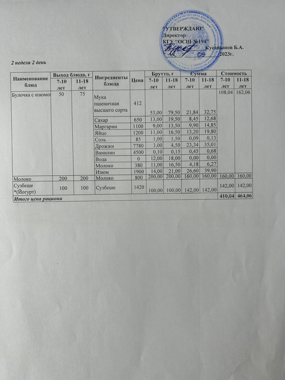 12 сентябрь 2023 0 1 2 3 4 5 Бастауыш сынып оқушыларына және аз қамтылған отбасылардын шыққан оқушыларға арналған буфеттік меню 12.09.2023