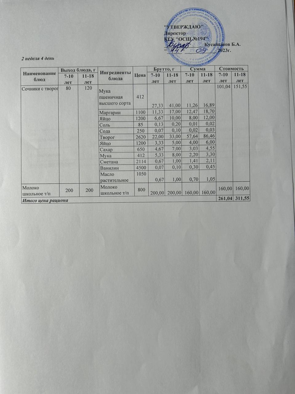14 сентябрь 2023 0 1 2 3 4 5 Бастауыш сынып оқушыларына және аз қамтылған отбасылардын шыққан оқушыларға арналған буфеттік меню 14.09.2023
