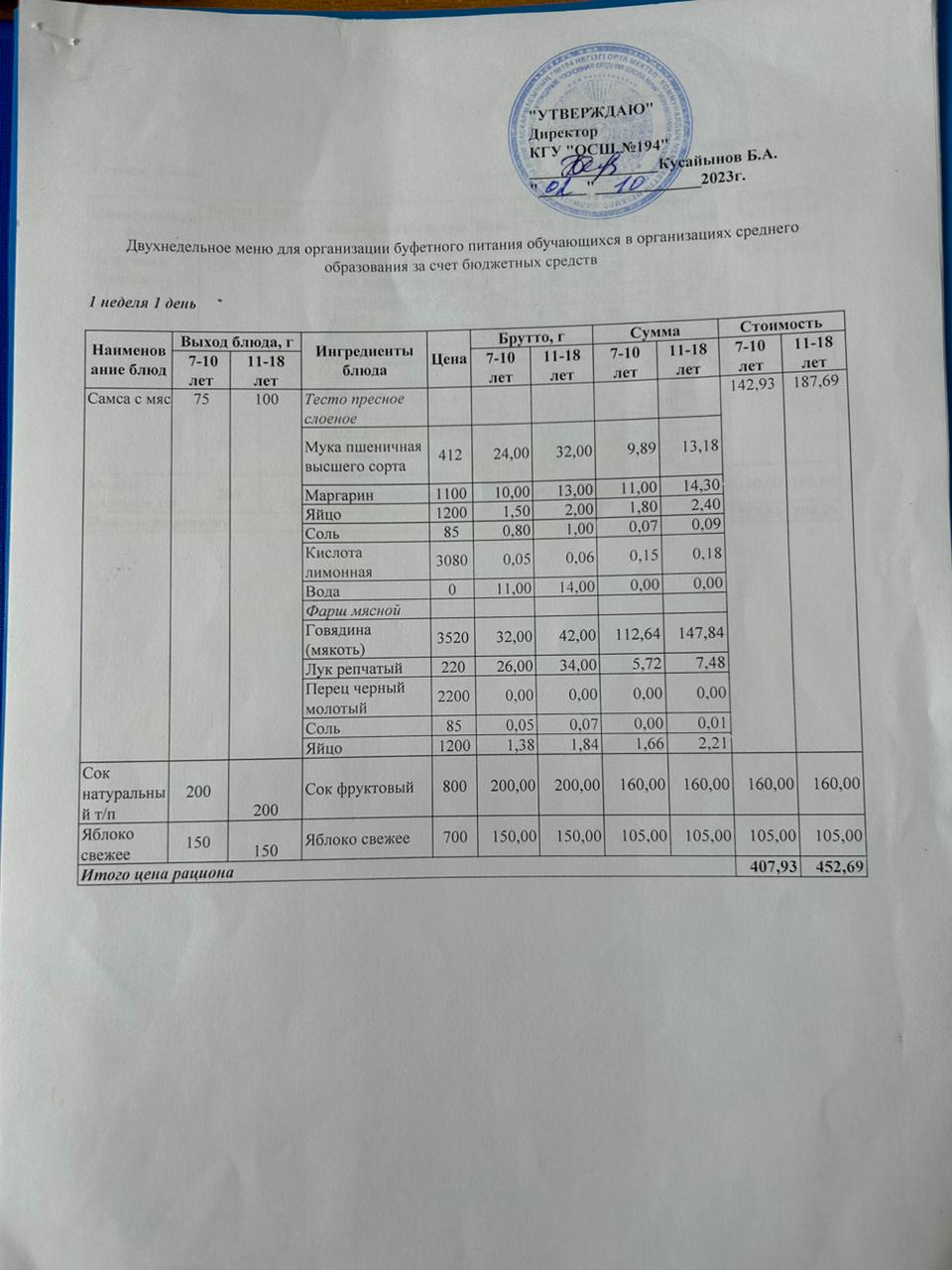 02 октябрь 2023 0 1 2 3 4 5 Бастауыш сынып оқушыларына және аз қамтылған отбасылардын шыққан оқушыларға арналған буфеттік меню 02.10.2023