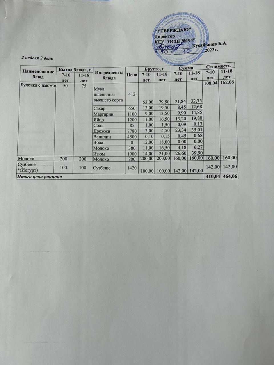 10 октябрь 2023 0 1 2 3 4 5 Бастауыш сынып оқушыларына және аз қамтылған отбасылардын шыққан оқушыларға арналған буфеттік меню 10.10.2023