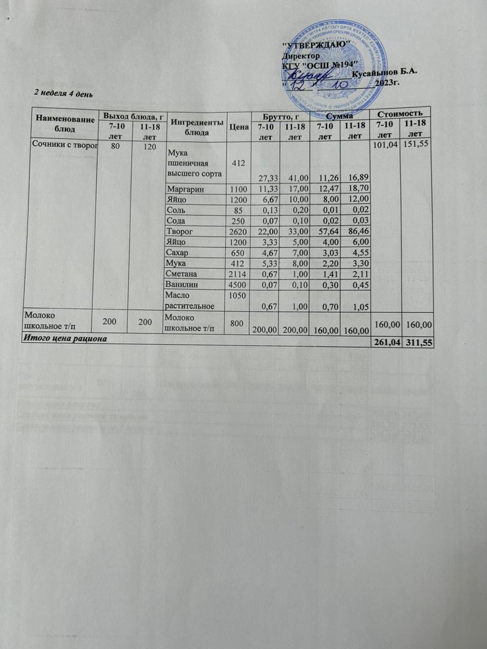 12 октябрь 2023 0 1 2 3 4 5 Бастауыш сынып оқушыларына және аз қамтылған отбасылардын шыққан оқушыларға арналған буфеттік меню 12.10.2023