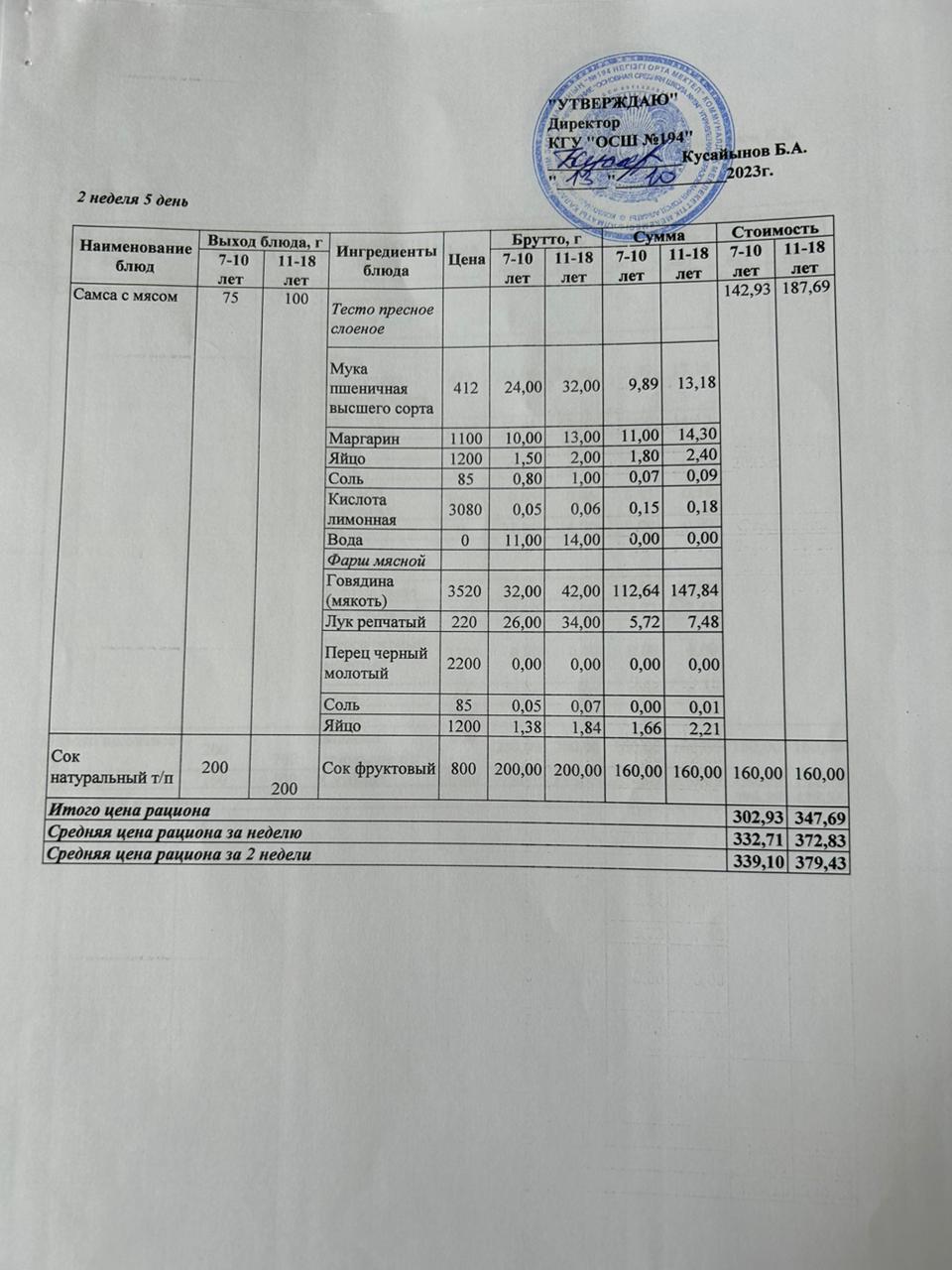 13 октябрь 2023 0 1 2 3 4 5 Бастауыш сынып оқушыларына және аз қамтылған отбасылардын шыққан оқушыларға арналған буфеттік меню 13.10.2023