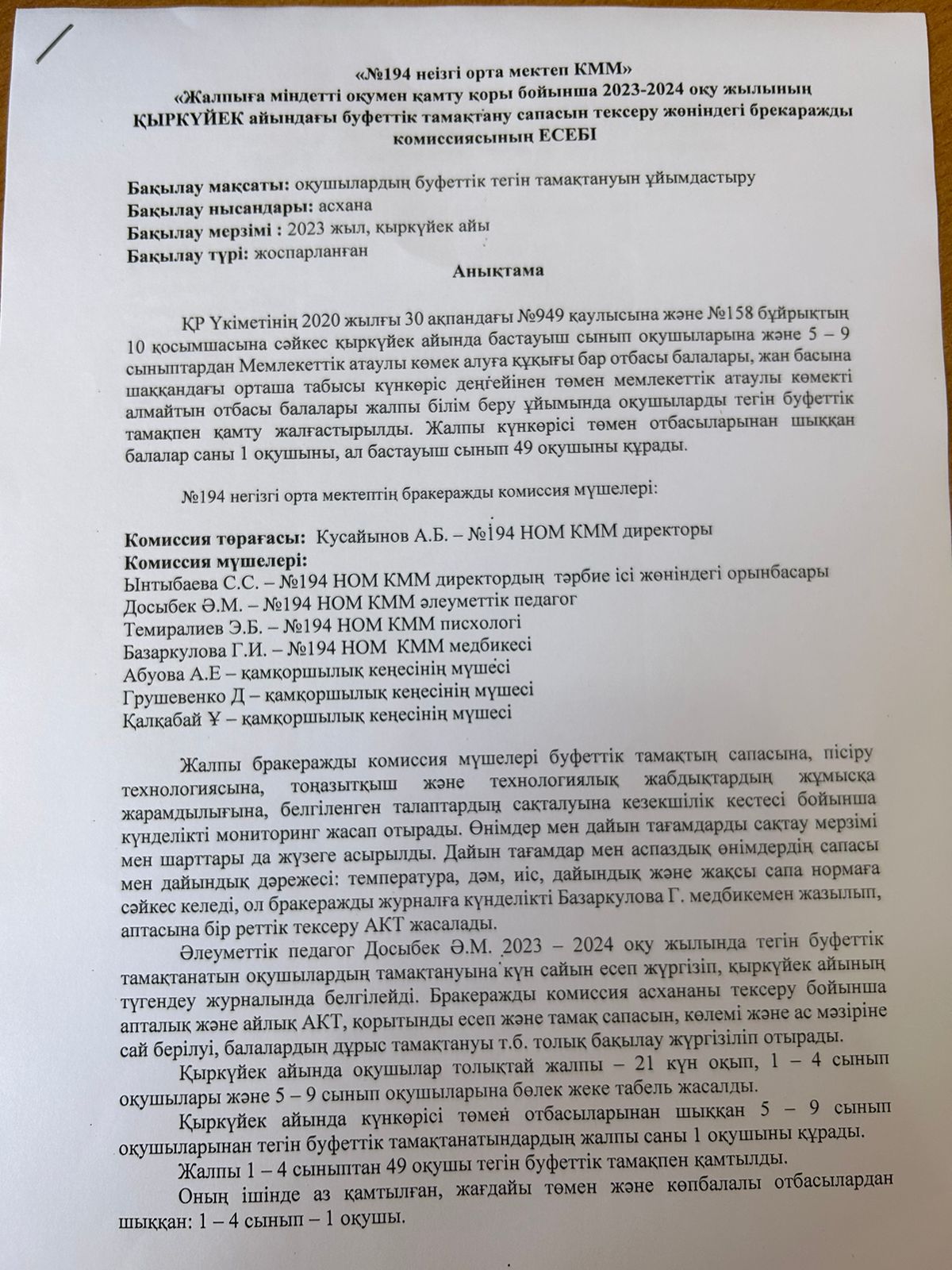 29 сентябрь 2023 0 1 2 3 4 5 Брокерлік комиссияның қыркүйек айында асхананы тексергені туралы анықтама