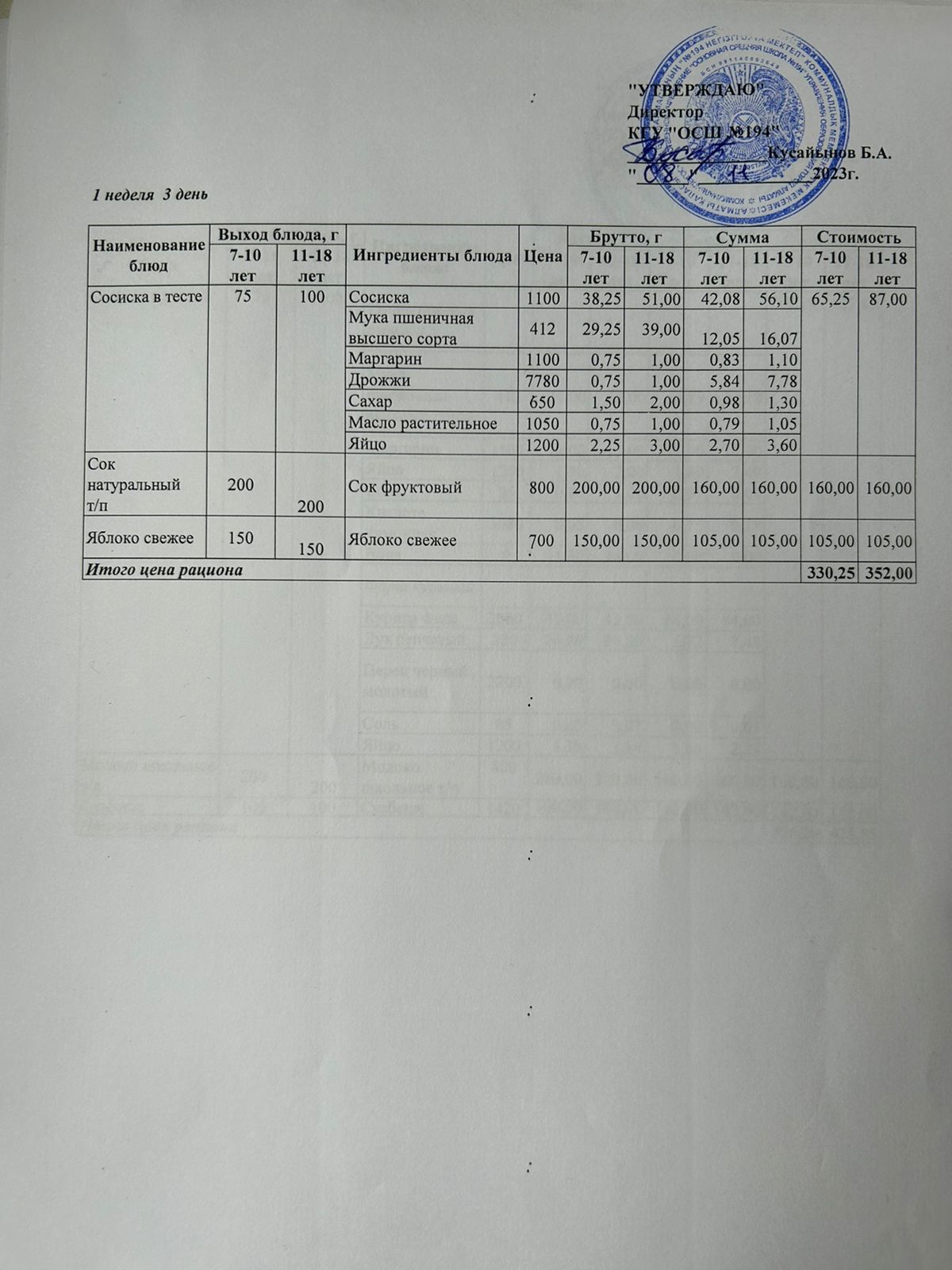 08 ноябрь 2023 0 1 2 3 4 5 Бастауыш сынып оқушыларына және аз қамтылған отбасылардын шыққан оқушыларға арналған буфеттік меню 08.11.2023