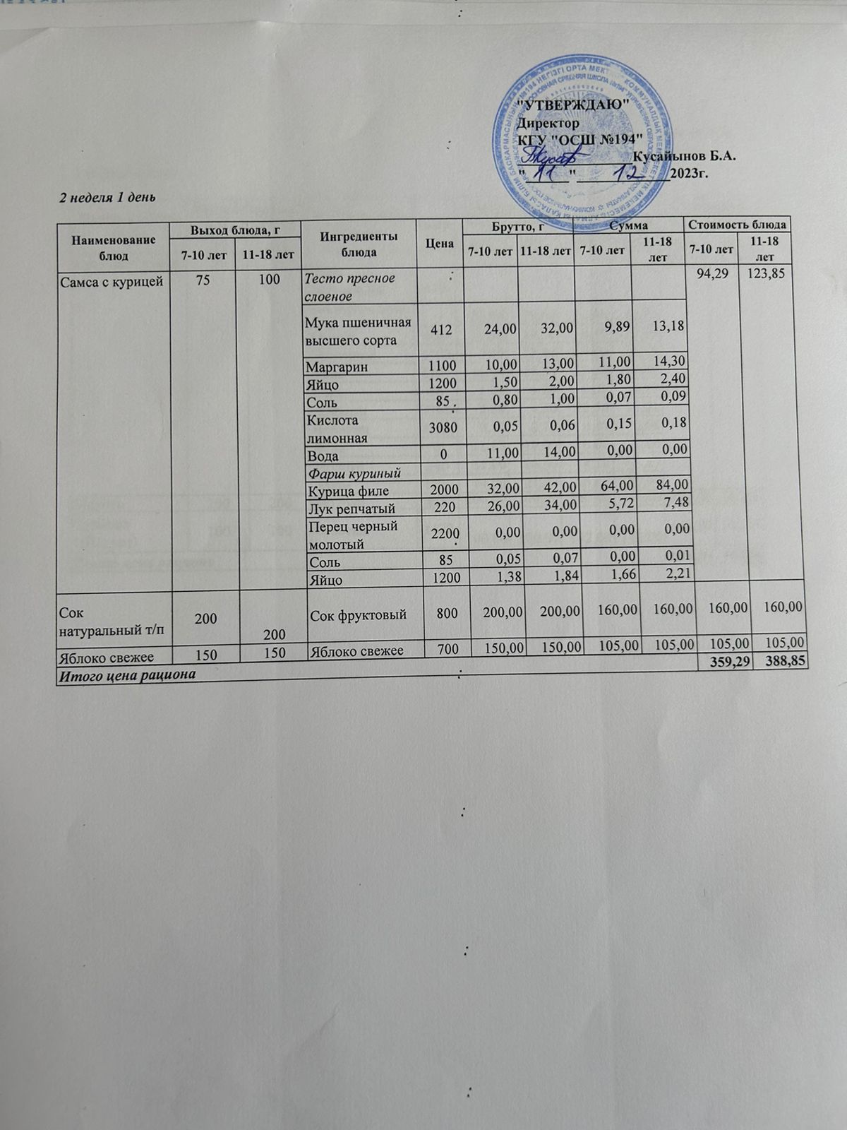 11 декабрь 2023 0 1 2 3 4 5 Бастауыш сынып оқушыларына және аз қамтылған отбасылардын шыққан оқушыларға арналған буфеттік меню 11.12.2023