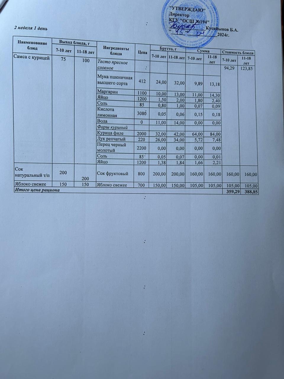 15 январь 2024 0 1 2 3 4 5 Бастауыш сынып оқушыларына және аз қамтылған отбасылардын шыққан оқушыларға арналған буфеттік меню 15.01.2024