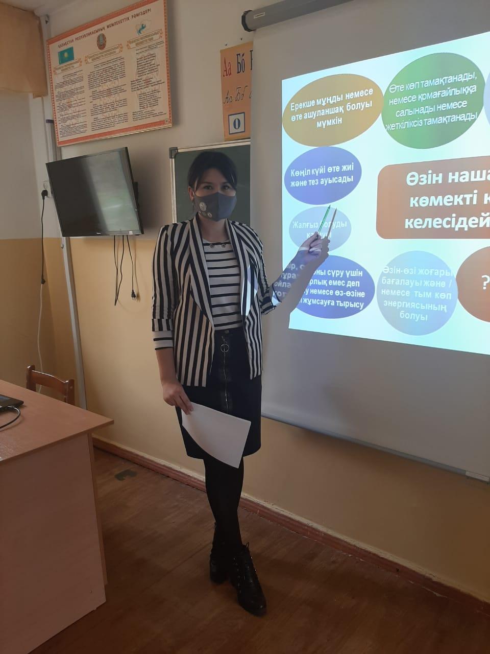 23 октябрь 2020 0 1 2 3 4 5 Психологиялық денсаулық күні өткізілді Бүкіл әлем 10-қазан Психологиялық денсаулық күнін атап өтті. Осыған орай №194 негізгі орта мектеп психологі Э.Б.Темиралиева әр сыныпқа танымдық сабақ өткізді. Дену сау ұрпақ - ұлт болашағ ы!