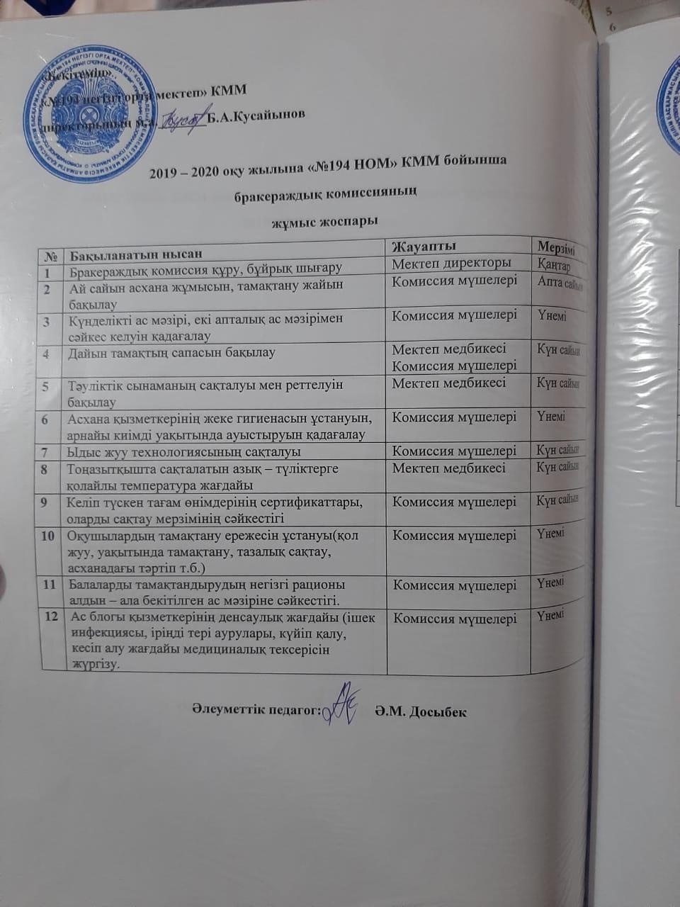 Брокеражды комиссия жұмыс жоспары » КГУ «Общеобразовательная школа №194 » Управления образования г.Алматы