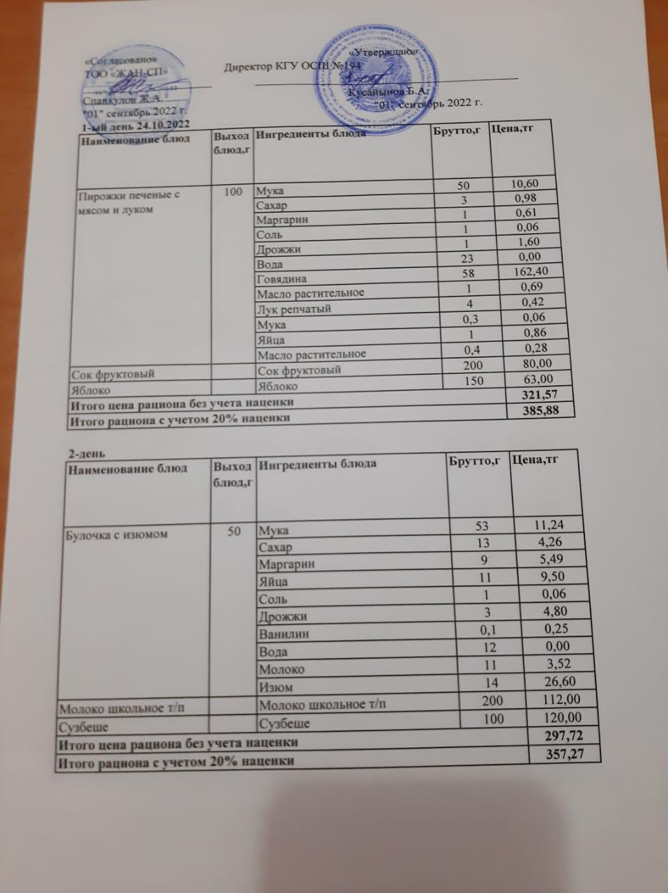 24 октябрь 2022 0 1 2 3 4 5 Бастауыш сынып оқушыларына және аз қамтылған отбасылардын шыққан оқушыларға арналған буфеттік меню 24.10.2022