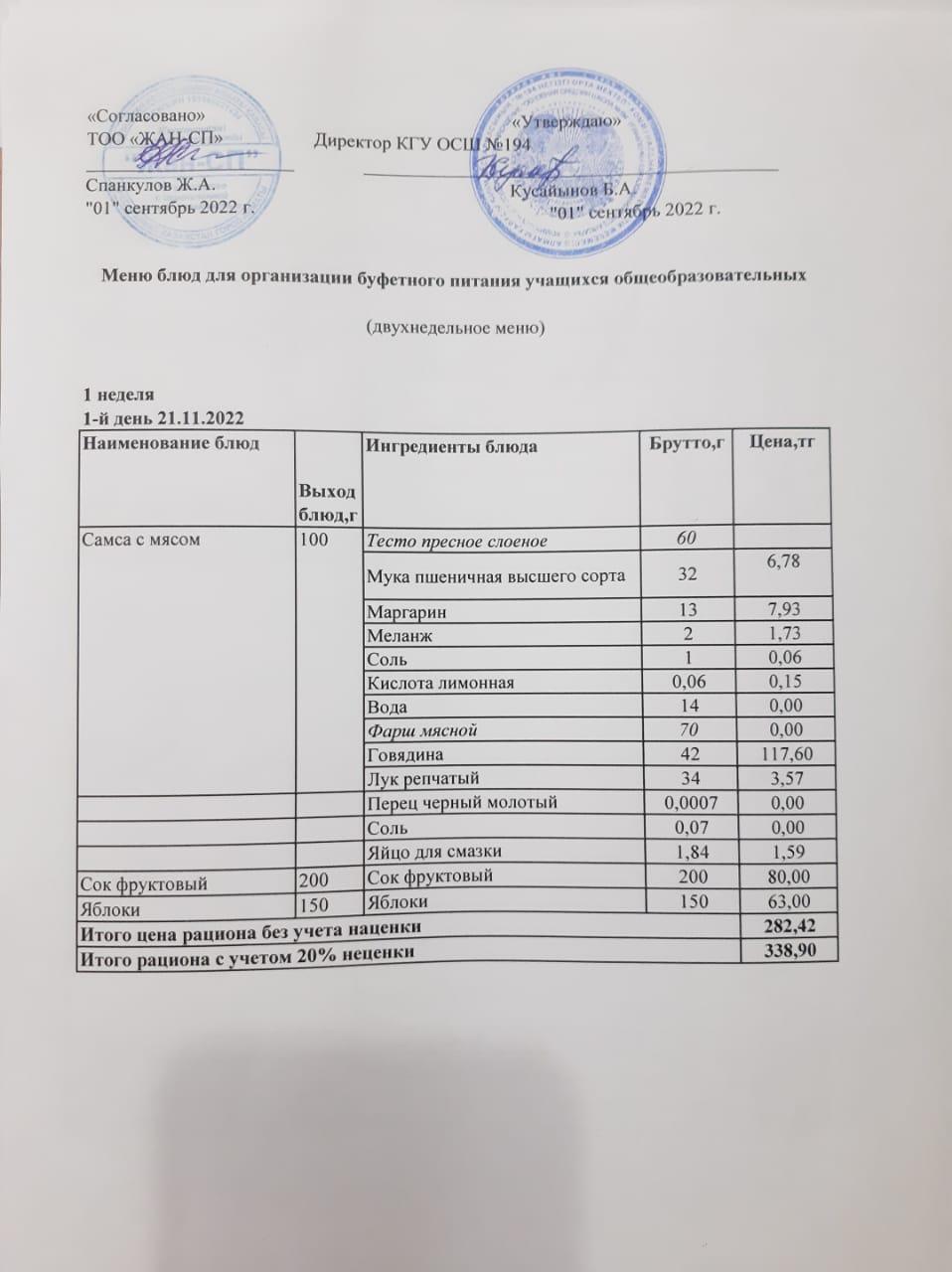 21 ноябрь 2022 0 1 2 3 4 5 Бастауыш сынып оқушыларына және аз қамтылған отбасылардын шыққан оқушыларға арналған буфеттік меню