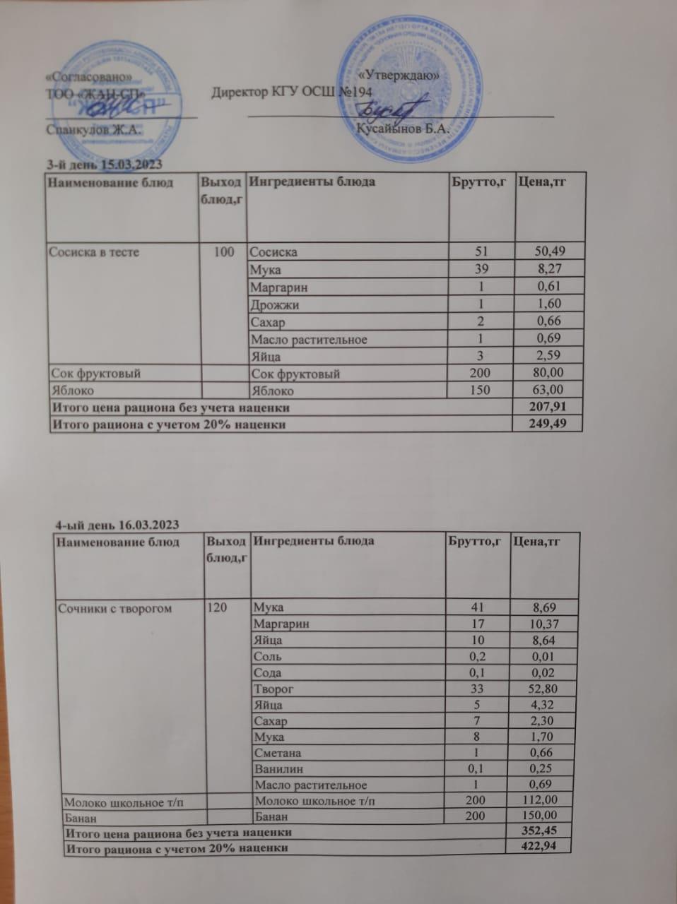 15 март 2023 0 1 2 3 4 5 Бастауыш сынып оқушыларына және аз қамтылған отбасылардын шыққан оқушыларға арналған буфеттік меню 15.03.2023-16.03.2023