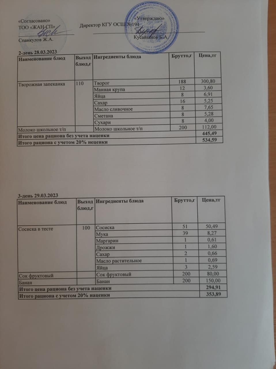 28 март 2023 0 1 2 3 4 5 Бастауыш сынып оқушыларына және аз қамтылған отбасылардын шыққан оқушыларға арналған буфеттік меню 28-29.03.2023