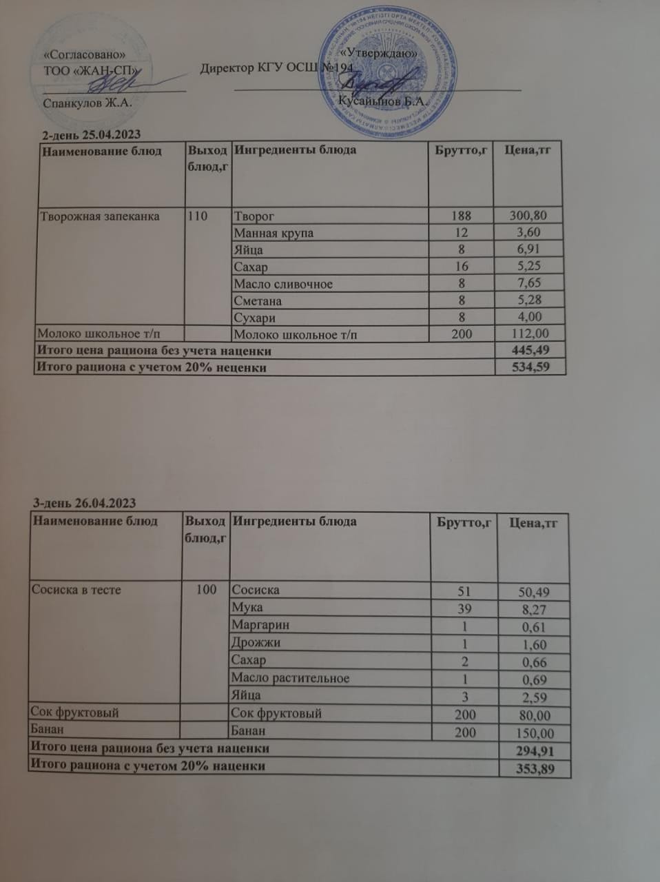 25 апрель 2023 0 1 2 3 4 5 Бастауыш сынып оқушыларына және аз қамтылған отбасылардын шыққан оқушыларға арналған буфеттік меню 25-26.04.2023