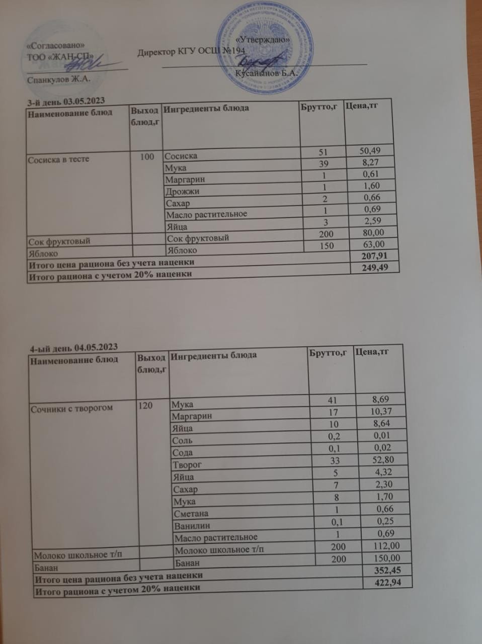 03 май 2023 0 1 2 3 4 5 Бастауыш сынып оқушыларына және аз қамтылған отбасылардын шыққан оқушыларға арналған буфеттік меню 03-04.05.2023