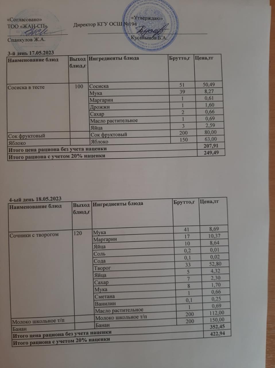 17 май 2023 0 1 2 3 4 5 Бастауыш сынып оқушыларына және аз қамтылған отбасылардын шыққан оқушыларға арналған буфеттік меню 17-18.05.2023