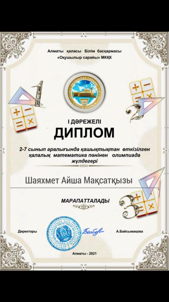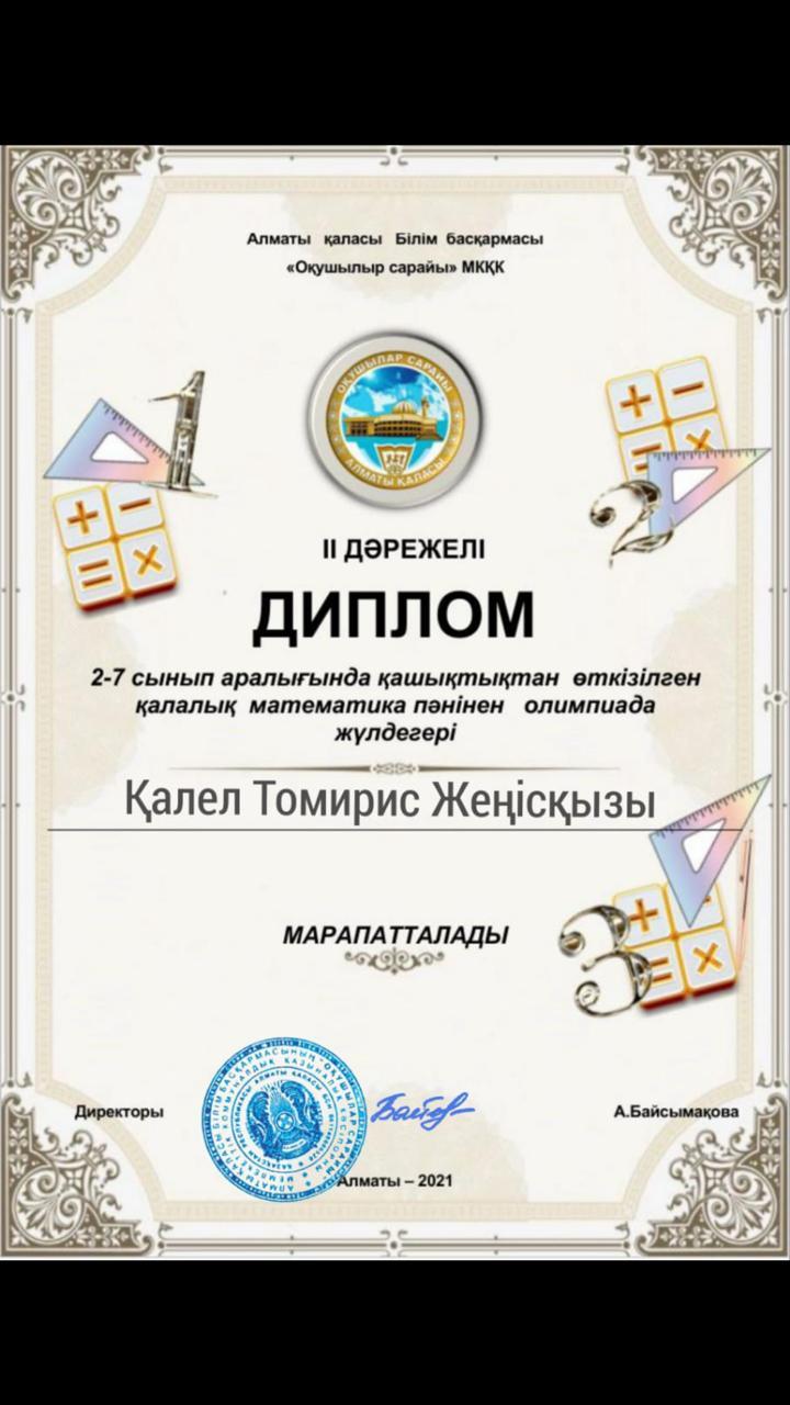 10 март 2021 0 1 2 3 4 5 Жетістіктеріміз 2-7 сыныптар аралығында қашықтықтан өткізілген қалалық математика пәнінен олимпиада жүлдегерлері