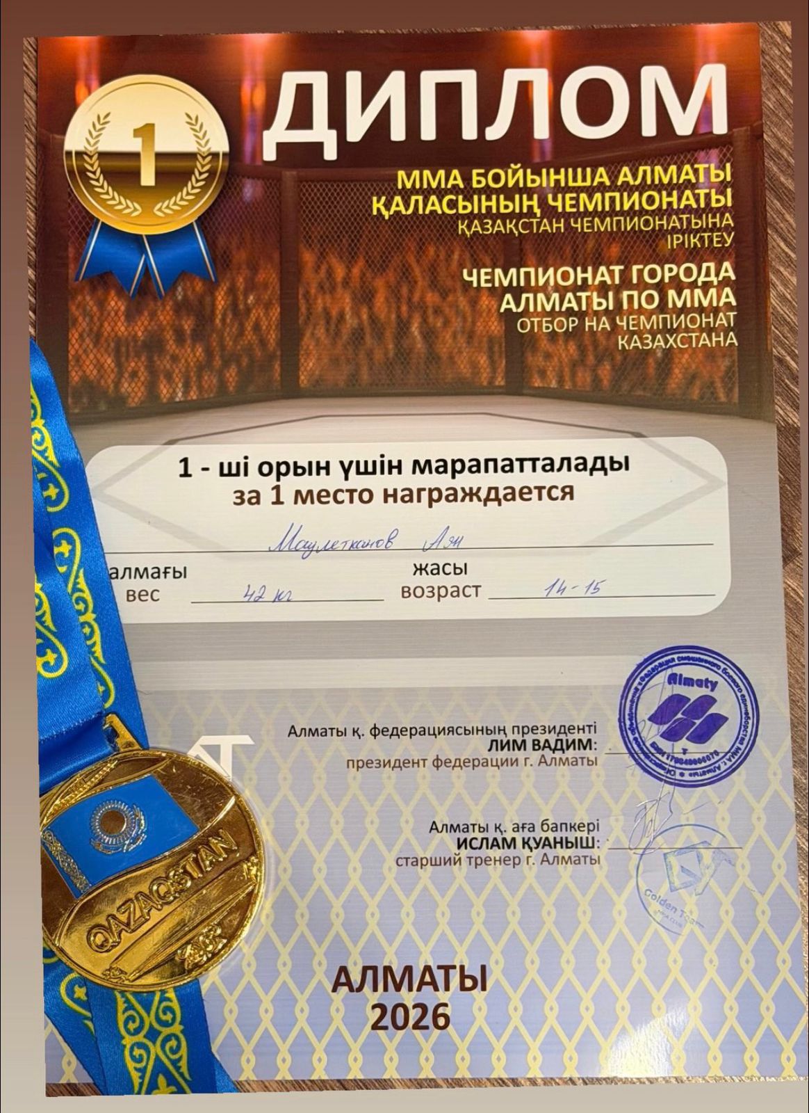 Мектебіміздің білім алушысы Маулетканов Аян ММА бойынша Қазақстан Чемпионатына іріктеу кезеңінде Алматы қаласы бойынша 1-орын иеленіп, жолдама алды. Құттықтаймыз! Поздраляемученика Маулетканова Аяна с 1-местом в Чемпионате города алматы отбора на чемпионат Казахстана!