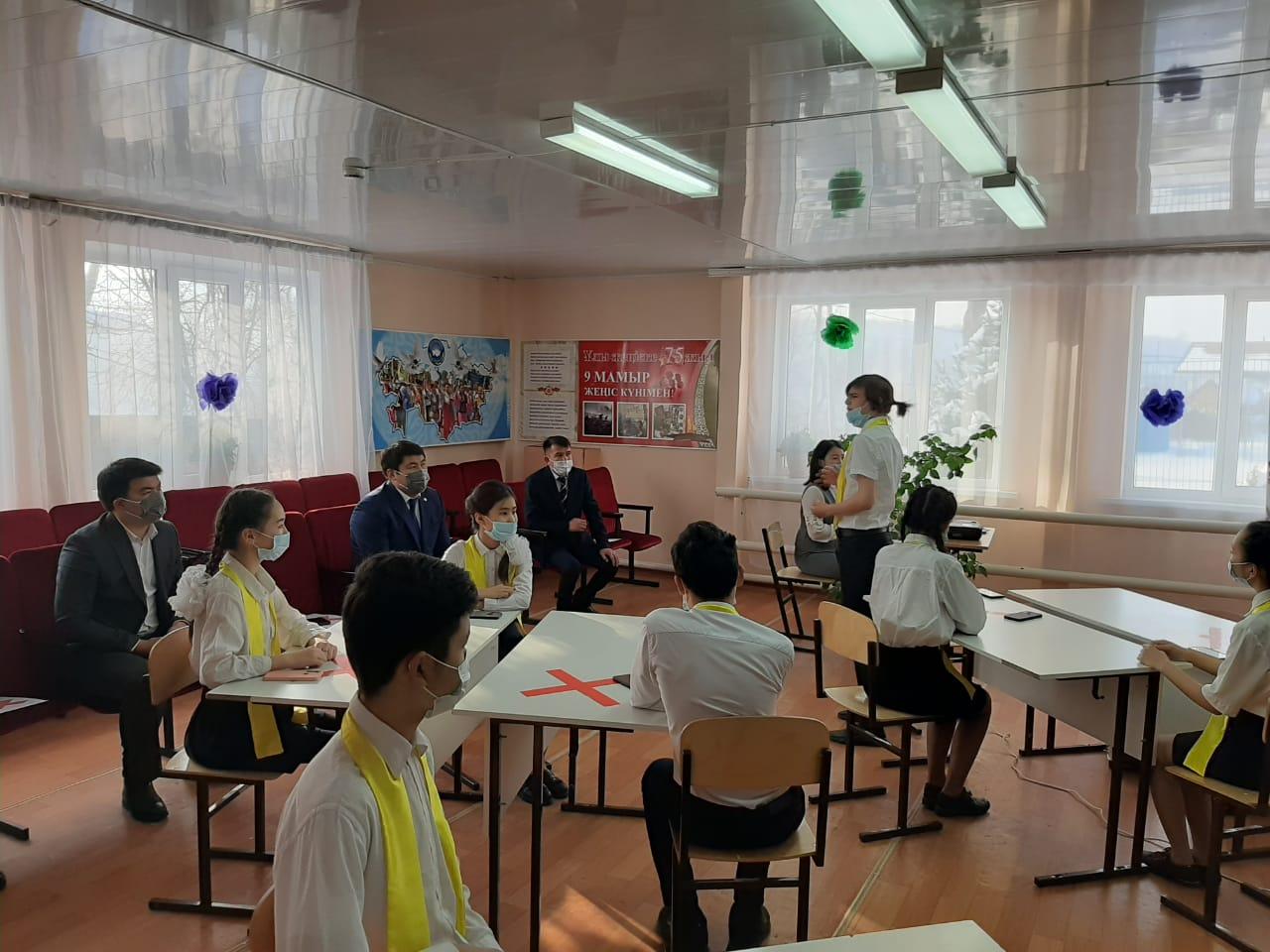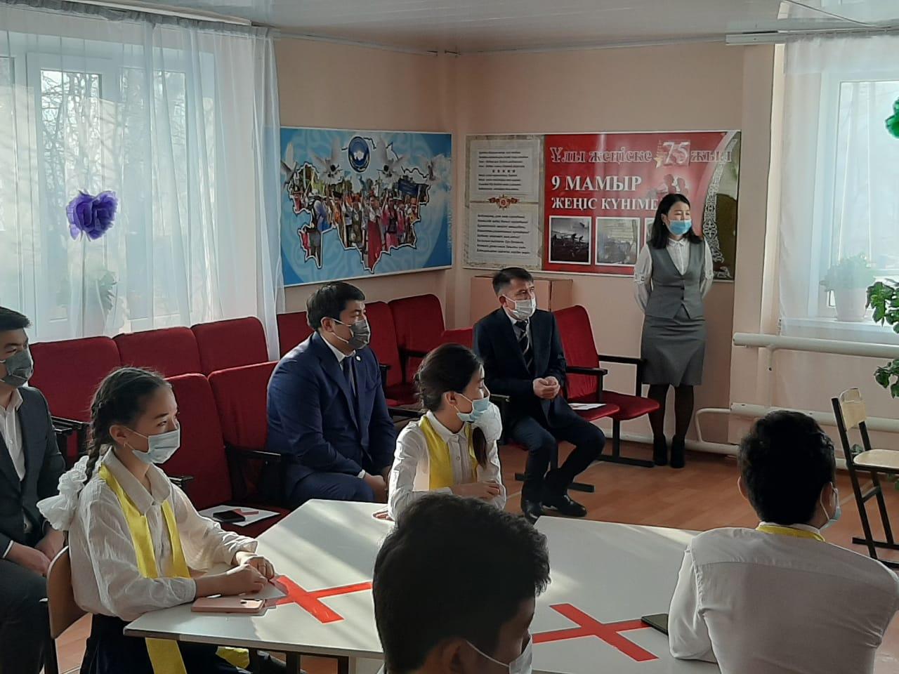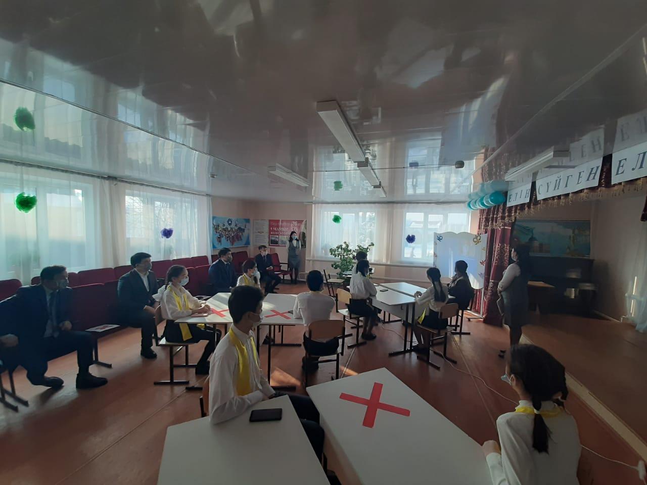 Қазақстан Республикасының Тұңғыш Президент күніне орай жоспарға сәйкес іс-шараға Алматы қаласы Медеу ауданының әкімі Масабаев Асет Дүйсебекұлының қатысуымен мектебіміздің "Елін сүйген елбасы" тақырыбында тәрбие сағаты өтті. Медеу ауданының әкімі мектебіміздің жоғары сынып оқушыларымен Елбасымыздың өмір жолы мен еңбек жолы туралы әңгіме қозғап, жас ұрпаққа үлгі болатын басшы екенін көрсете білді.